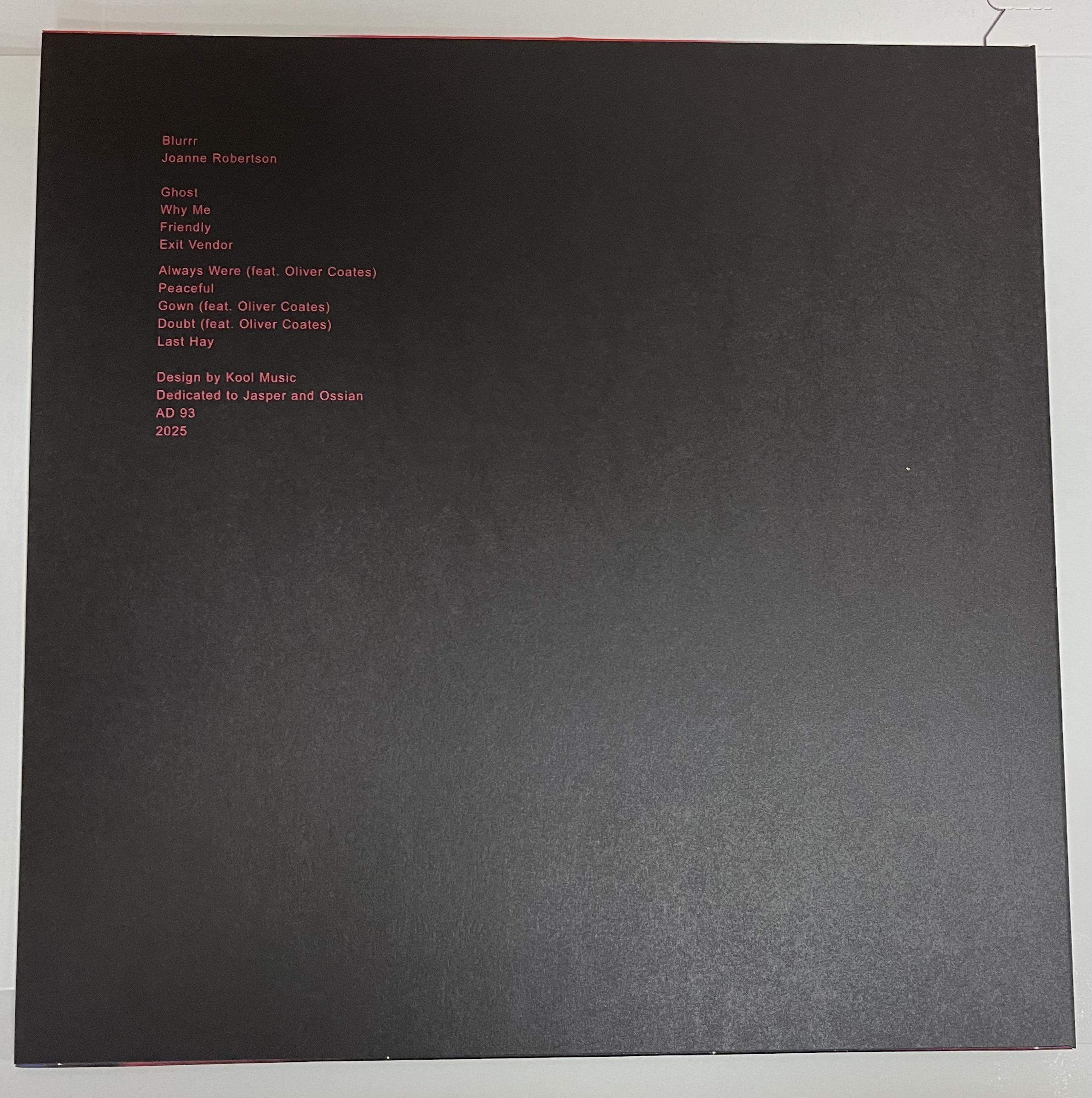 More enigmatic, autumnal folk brilliance courtesy of our friend and Dean Blunt collaborator Joanne Robertson, who's undoubtedly one of the best in the game right now. The masterful cellist Oliver Coates appears alongside Robertson on three songs, adding a tastefully subdued element to the Glasgow-based artist's lo-fi tracks, which consist of her breathtakingly beautiful vocals and gently fingerpicked guitar. Absolutely top notch, and one of PV's favorite albums of 2025.